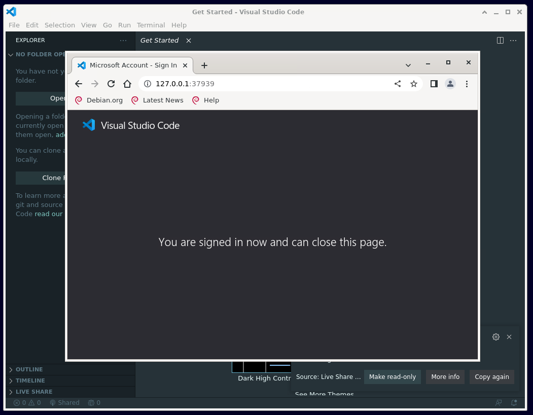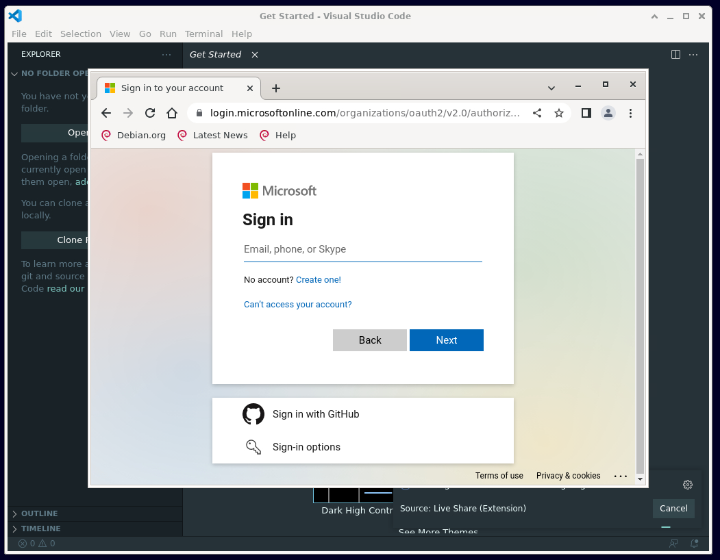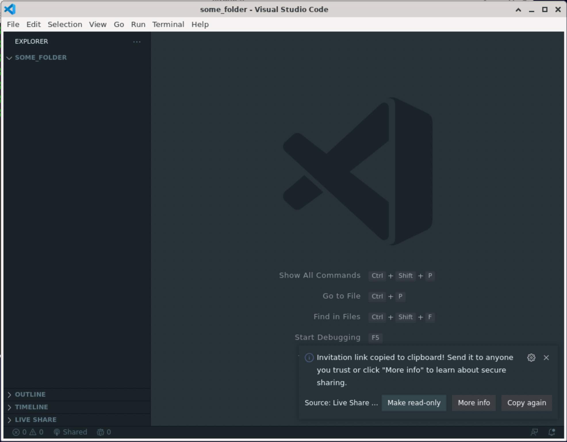 Once you've completed the steps above, you should have a VSCode window which is connected to a Liveshare session.
