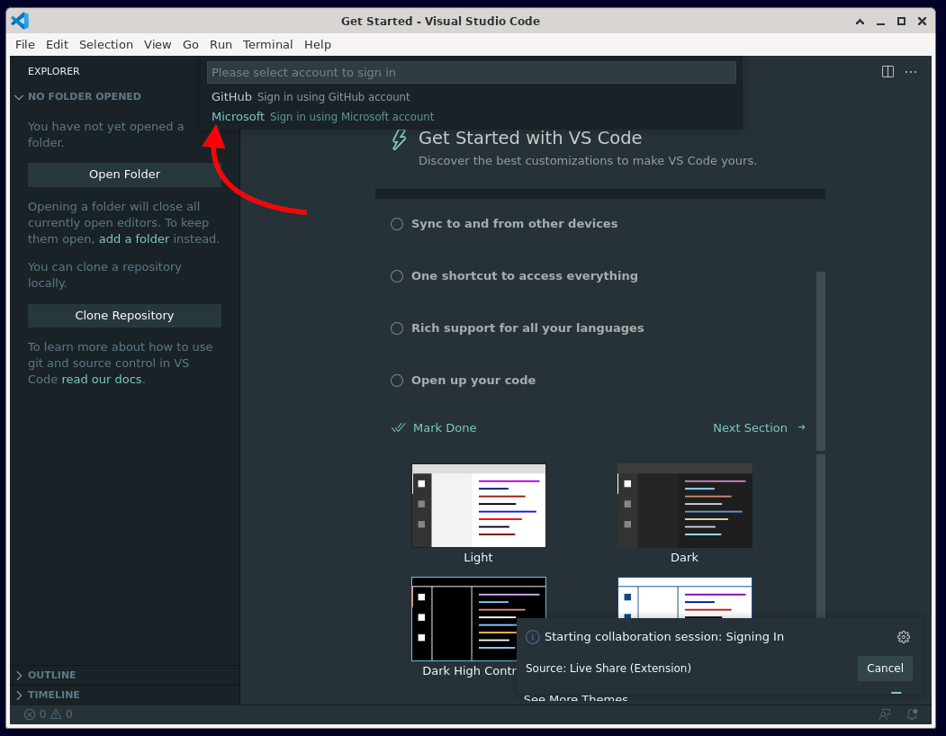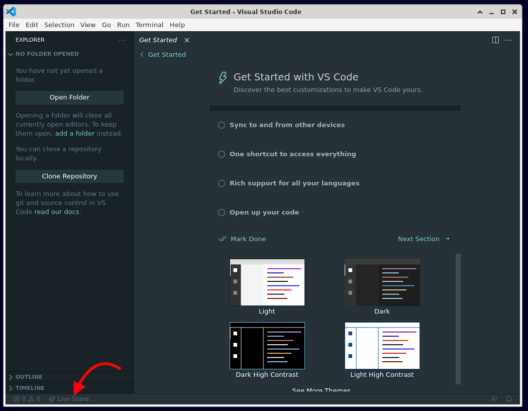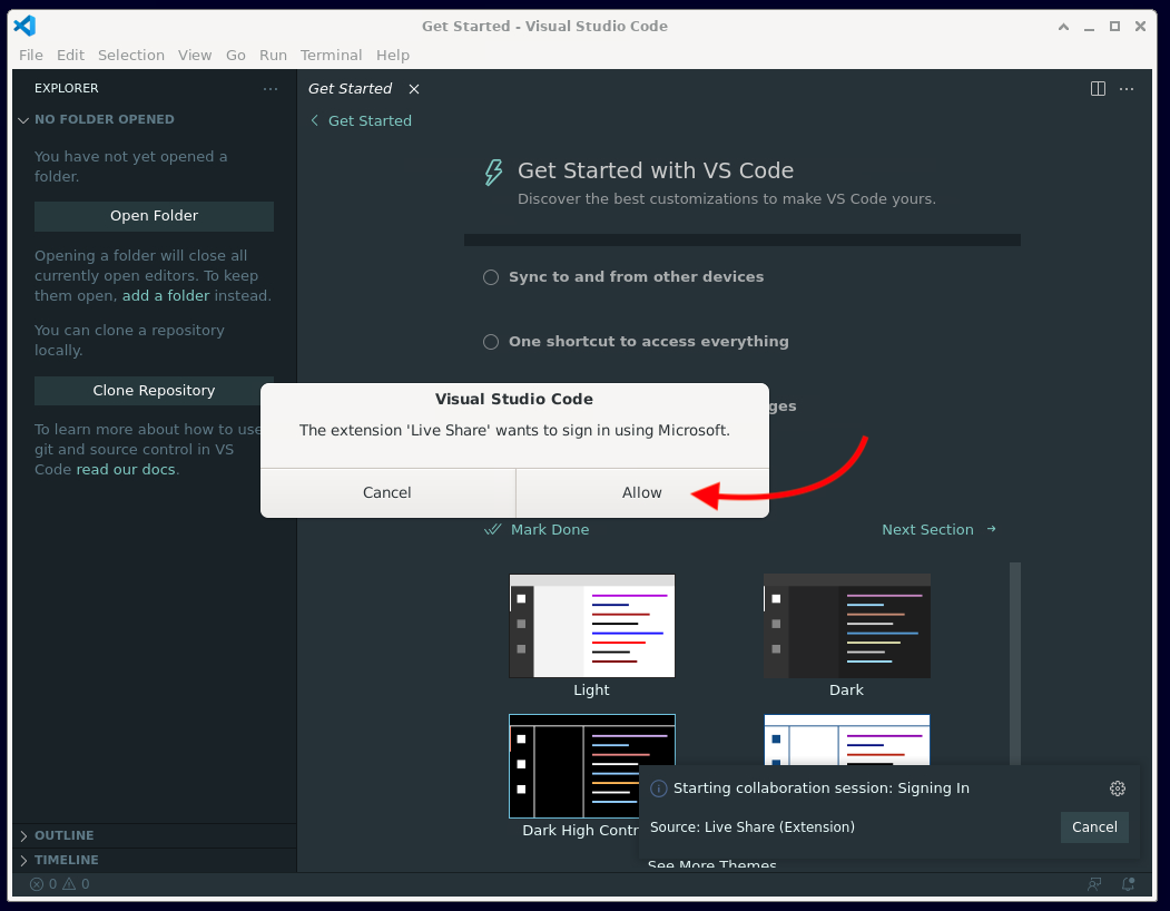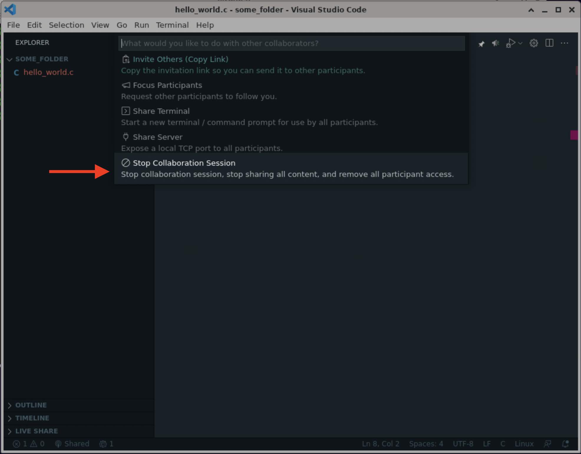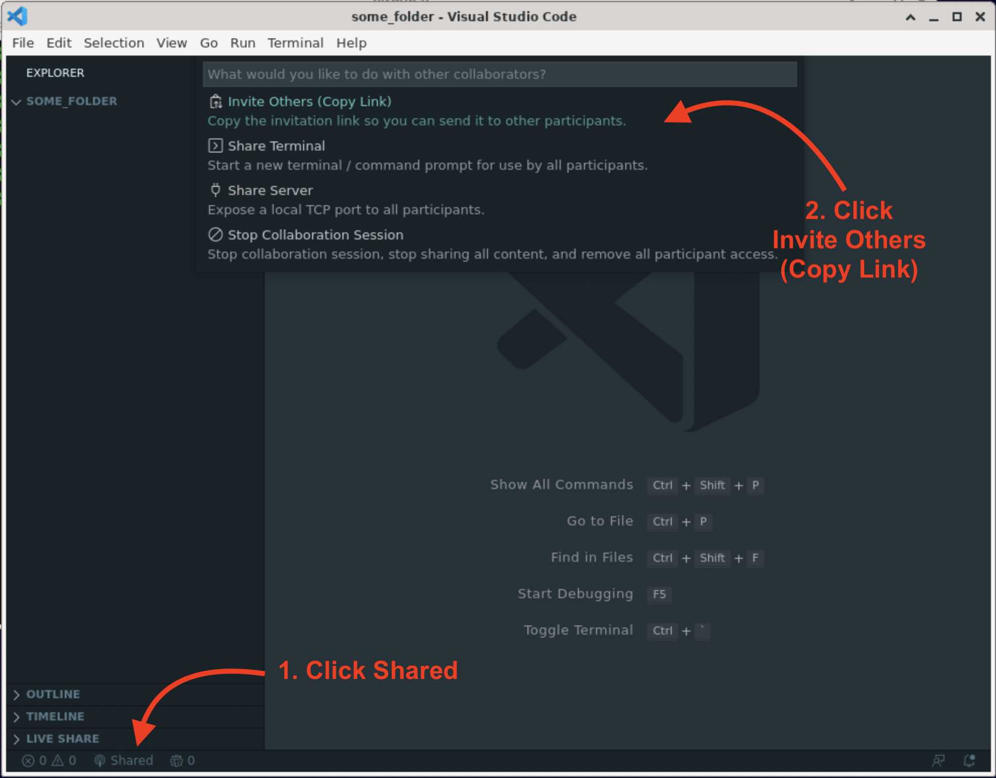 Once you've completed the steps above, you should have a VSCode window which is connected to a Liveshare session.