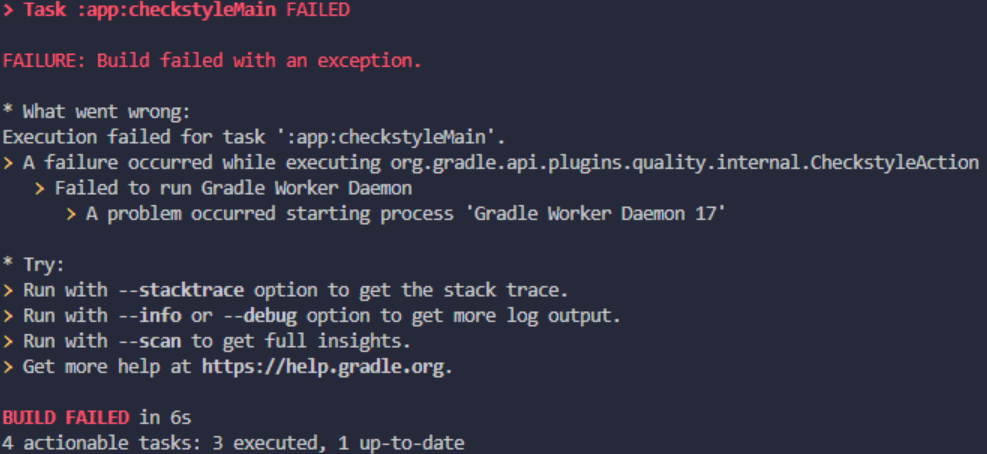 6.3. A problem occurred starting process 'Gradle Worker Daemon 17'