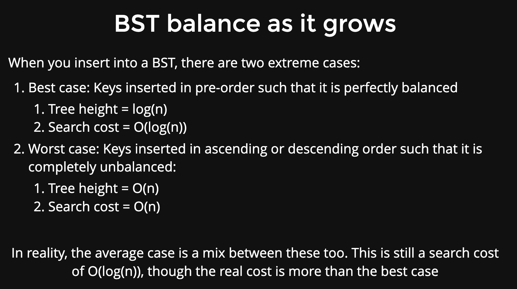 Balanced BSTs, when there's equal number of nodes on the left and right subtrees