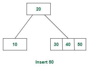 => Insert 20 in the root (which is also the leaf) in a sorted manner.