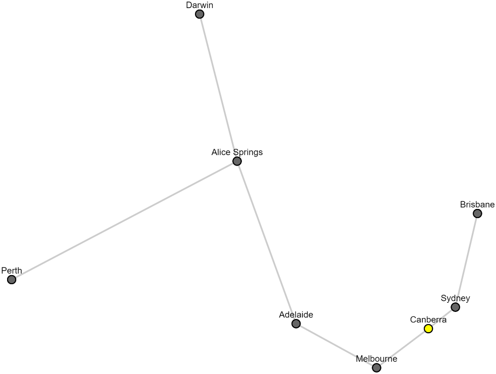 Power line between Canberra (821, 165) and Sydney (870, 204)