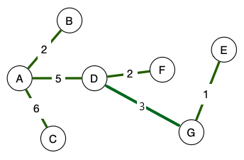 - Updated MST: V = {A, B, D, F, G}, E = {AB, AD, DF, DG}