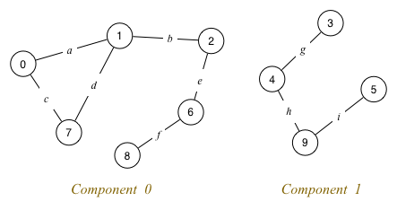 Graphrepresentation structure for this graph:cc[] = {0, 0, 0, 1, 1, 1, 0, 0, 0, 1}Show how the