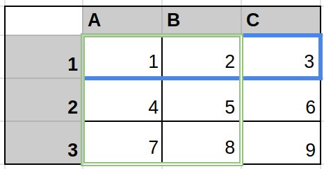 row number. For example, the cell in the first column and the first row is "A1". The cell in the second column and