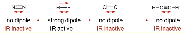 vibration must involve a change in the dipile moment along the bond being stretched.